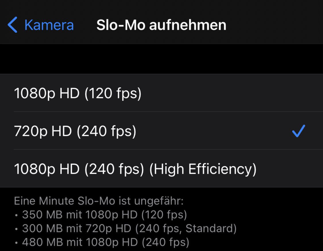 In den Einstellungen unter Kamera legt ihr neben der Auflösung die Wiederholungsrate fest Ziemlich cool Das iPhone XS verringert die Wiederholungsrate in einer dunklen Umgebung automatisch auf 24 fps, damit mehr Licht auf den Sensor trifft und eure Aufnahmen heller werden.
