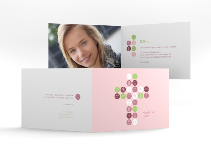 Danksagung Konfirmation Puderrosa Fotocollage Kaartje2go