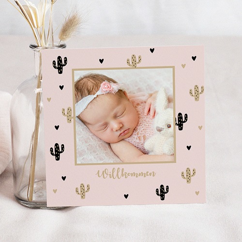Geburtskarten Fur Madchen Kaktus Und Gold Kostenloser Probedruck Carteland