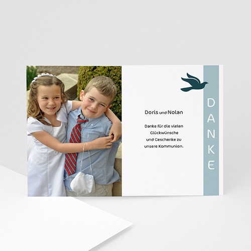 Dankeskarten für Hochzeit, Geburt, Taufe, Kommunion, Geburtstag, Trauer uvm günstig online gestalten und drucken lassen bei Dankeskartecom Hier finden Sie die größte Auswahl an Designvorlagen von vintage bis modern!. Dankeskarten zur Hochzeit, Geburt und Kommunion Sie haben im Kreis Ihrer Lieben geheiratet und ein unvergessliches Fest mit einzigartigen Momenten gefeiert?. Diese wunderschöne Dankeskarte zur Kommunion wird Ihre lieben Gäste verzaubern, so viel ist sicher Sie wurde in einem lieblichen hellblau Ton mit einer braunen Streifenborte entworfen Sollten Sie keine geeigneten Fotos haben, stellen wir Ihnen diese selbstverständlich gerne zur Verfügung.