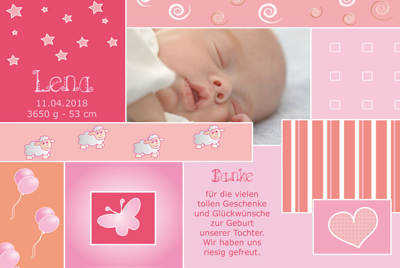 Dankeskarten geburt madchen. Bei der Farbgebung wird oft klassisch vorgegangen – Rosa für Mädchen, Blau für Jungs Das muss aber nicht sein Jeder fröhliche, freundliche Farbton eignet sich bestens für die Dankeskarten zur Geburt Selbst wer bei der klassischen Farbverteilung bleibt, braucht Kritik aus der GenderMainstreamingFraktion nicht zu befürchten. Persönliche Dankeskarten zur Geburt online entwerfen die Sie individuell für Dankeskarten aber auch Ihre Geburtskarten für Mädchen oder Jungen wählen können Freuen Sie sich über Glück im Doppelpack, entwerfen Sie mit Kartenliebe hochwertige Geburtskarten für Zwillinge Wählen Sie zur Gestaltung aus zehn verschiedenen. Die Lieferung ging blitzschnell Gestern bezahlt und heute schon im Briefkasten unglaublich!.